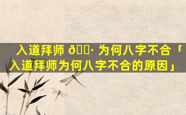 “入道拜师为何八字不合”并不是一个广泛认同的说法。通常 🐅 情况下拜师,学。艺并不会考虑八字是否相合