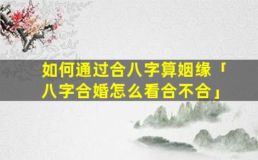 如 🦟 何通过 🦢 合八 🐅 字算姻缘