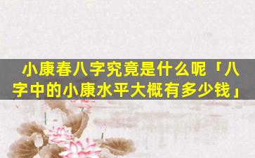 八字 🦢 中并没有特定的标准来定义小 🐵 康水平的金额小康水平。因人而异,受,到多种因素的影响例如居住地、职、业。家庭规模和生活方式