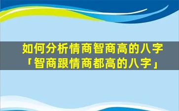 分析 🕸 情商智商高的八字特 🐡 征