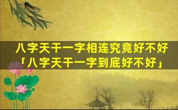 八字天干一字到底好不好取决 🌾 于以下因 🕊 素: