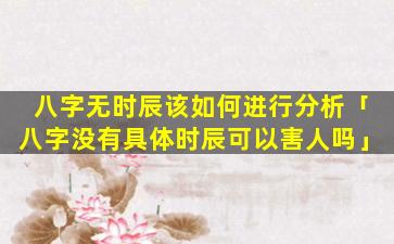 从科 🌴 学的角度来 🐡 看,八字没有具 🌴 体时辰并不能证明其可以或不可以害人。
