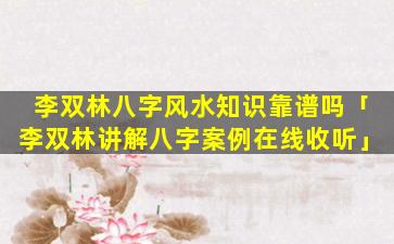 李双林八字 🦄 风水知识 🦉 的可靠性