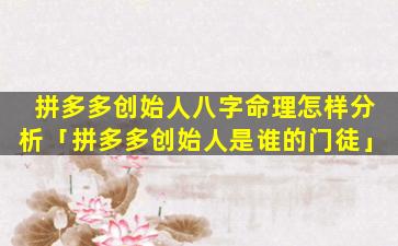 拼多 🌻 多创始人黄 🌼 峥的八字命理分析