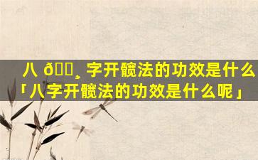 八字开髋法的 🕷 功效: