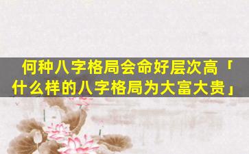 八字格局层次的高低取决于多个因素,包括命格、五、行流 🦍 通格局组合等。以下是一些一般被认为命好层次高的八字格局: