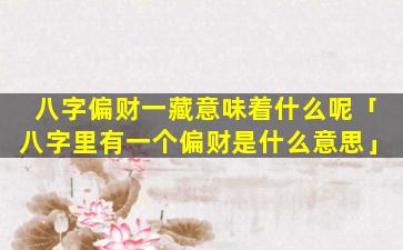 八字中偏财一藏是指在命局的八个字中,仅出现一个偏财星偏财。又,称为 🌲 外财代表意外之财偏、门。之财偏财 🐯 一藏的情况有以下几种含义: