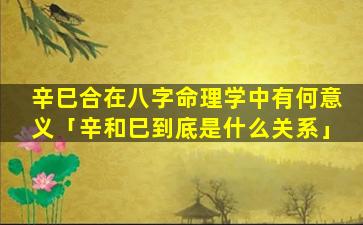 辛巳合 💐 在八字命理 🕊 学中的意义