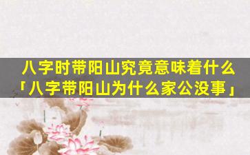 “八字带阳山家公没事 💐 ”的说法 🌵 缺乏科学依据,无法从命理学 🦅 的角度解释。