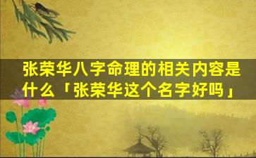 综合评价张荣华是一个寓意 🐵 美好、音、律和谐易于书写记 🌻 忆的名字。适 🐬 合作为孩子的名字,寄、托。父母对孩子未来繁荣美好光彩夺目的期望