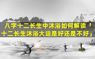 沐浴大运指的是八 🐘 字命理中十二长生中的沐浴“阶”段沐浴。代表 🌹 着新生、成长沐浴、更衣,预。示着新的开始和发展