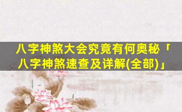 八字神煞大会的 🌸 奥 🌼 秘 🌻
