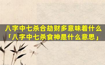 不过,八字中七杀合劫财多的情况也会因其他吉星的化解而有所不同。如,命,中有。食神制杀正财化劫则凶星的负面 🐵 影响会减弱