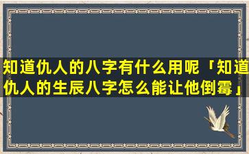 知道 🌿 仇人的八字在某些文化中可能被认为是有用的,尽 🌼 管这种做法有争议。