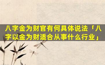 对于八字中“金 🐶 为财官”的说法,具体含义如下: