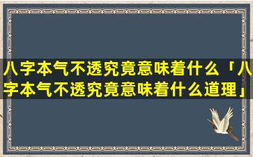 八字 🐺 本气不透的 🐼 含 🐺 义