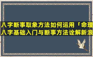 网址:八字断事取象方法在工 🦆 作中 🐝 的 🐒 运用