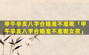 甲午辛亥八字合婚是否准取 🌹 决于具体八字的组合 🦊 和分析方法。