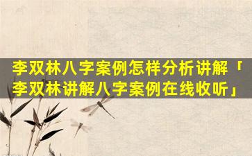 李双林 🐅 八 🌷 字案 🦍 例讲解