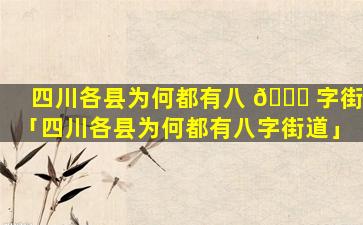 四川省部分县市都有 🐞 “八字街道”,这 🦋 并不是普遍现象。