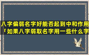 八 🐈 字偏弱名 🦊 字好能否起到中和作 🐺 用