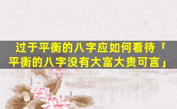 对于过 🐈 于平衡 🐼 的八 🐎 字,有以下几种看法: