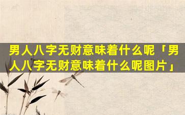 男人八字 🐎 无财意味着什么?