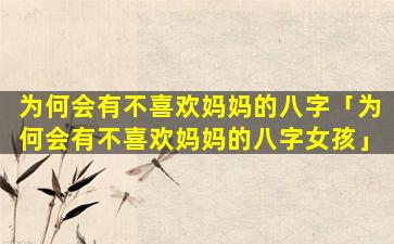 因此,如,果,一,个女孩不喜欢自己的母亲家长或相关人士应该进行深入了解分析原因 🐬 并寻求改善亲子关系的途径而不是归咎于八字。