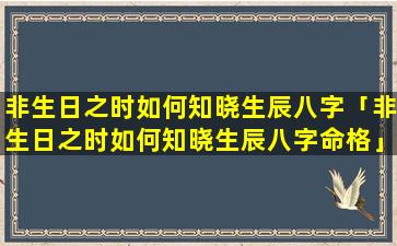 非 🦊 生日之时了解生辰八 🕷 字命格的方 🐯 法