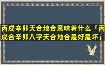 “天合 🐅 地合”是指天干地支中相合的两个年份。丙与辛为天干相合,戍与,卯“为地”支相合。因此丙戍 🦉 辛卯是天合地合的年份