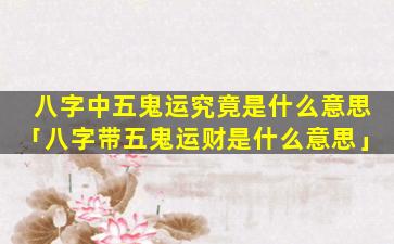 含义偏财运旺:五鬼主偏财,因,此八字带五鬼的人往往偏财运较好容易获得意外之财或横 🐈 财。