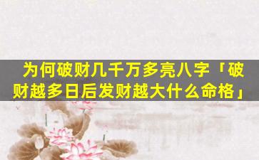 八字 ☘ 破财几千万的特征