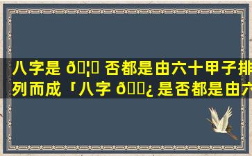 这句 🐬 话是错误的。八字并非完全由六十甲子排列而成而是,以,日柱为基础 🐠 结合 🐅 年柱、月柱、时,柱。形成一个完整的四柱八字