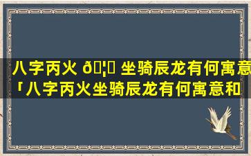 寓意:火土相生:丙火坐骑辰龙 🌿 ,形成火土 🐦 相生 🍁 之势火生。旺土土生,助火,五,行。流通有利于财运和事业发展