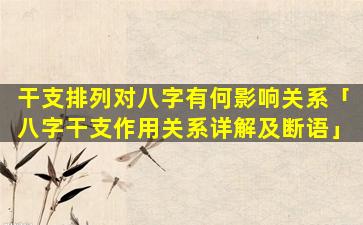 八字命理学中,干支排列对 🕷 命 🐼 理分析具有重要意义干支。配,合,刑冲克害影响命主的性格、运、势。健康等各个 💐 方面
