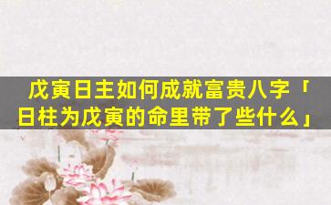 八字中 🐧 出现戌土或辰土,为戊寅日 🐒 主的财库财库。有,护,主。积财能力强 🐅 财运稳定