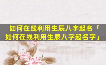 在网 🐞 站或工具中输入 🐟 您收集的信息:出生日期出生、时、间出生 🐈 地。有。些网站还可能会询问父母的生辰八字