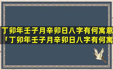 丁卯年壬 🐼 子月辛卯日八字寓意 🐎 为 🕷 :