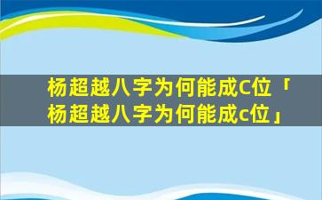 总体来说,杨,超,越的八字命 🐎 格较好事业财运亨通但感情运势较为复杂。