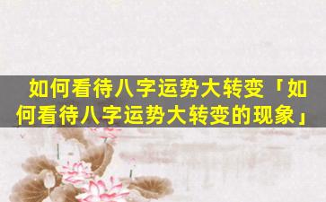 如何看待 🐝 八字运 🦉 势大转变的现象