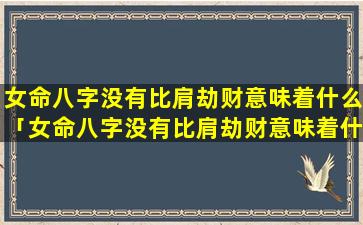 在八字命理学中,女命八字没有比肩劫财 🦟 意味着: