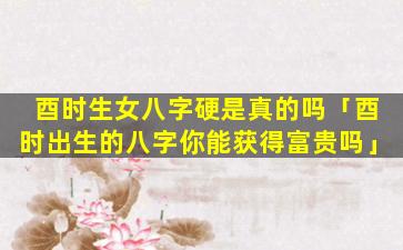 “酉时生女八字硬”的说法是一 🕷 种民间传言,缺乏科学依据。