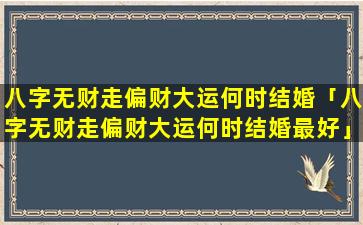 八字无财走偏财大运的最佳结婚时间,需要结合具体八字和流年 🦍 运势来判断。