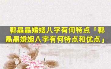 郭 🐡 晶晶 🌷 婚姻八字特点 🐘