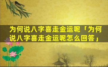 八字喜走金运 🕷 的原因可能有以下几点: