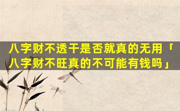 财不透干 🌺 是指 🦉 财星不显 🌾 露在月令或日支。