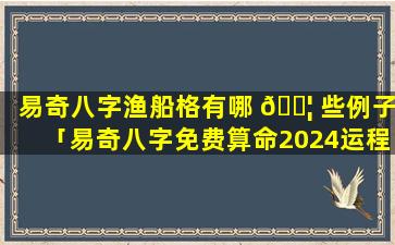 易奇八 🍁 字渔船是一 🐅 种用八字卦象推算船隻吉凶的技術。其原理是透過觀察船隻出港的日期、時辰和坐向,並,結。合船主八字來預測船隻航行的安全性和收穫以下是幾個易奇八字渔船的例子: