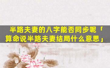 “半路夫妻 🌸 ”在算命 🌹 中的含义: