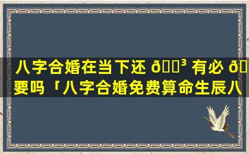 [点击此处]()访问八字合婚网 🦟 站,输入男女双方的出生年月日時辰 🦟 即可免费获取八字合婚结果 🐬 。