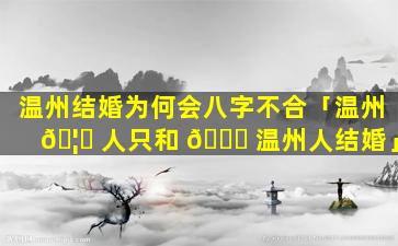 温州地处东南沿海 🐱 ,深受传统文化的影响。八,字,合。婚是古代的一种婚配习俗认为男女双方的八字相合婚姻才会幸福美满